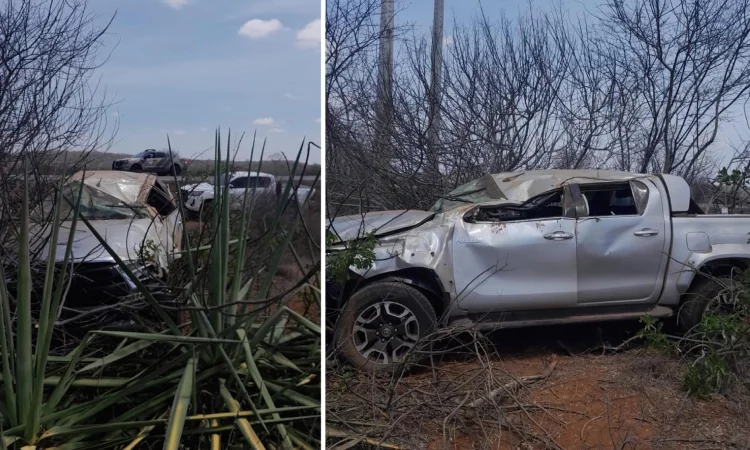 Segundo informações apuradas no local, o condutor de uma caminhonete perdeu o controle da direção após ser surpreendido por caprinos soltos na pista. O veículo saiu da via e capotou, ficando imobilizado em uma área de vegetação às margens da rodovia.