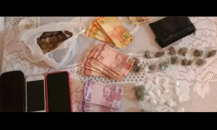 Durante a busca, foram apreendidas cédulas de real com indícios de falsificação, além de embalagens contendo maconha e cocaína prontas para a venda. Constatou-se ainda que a suspeita tentou se desfazer de parte das drogas, jogando-as no vaso sanitário.