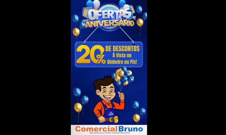 O Comercial Bruno está em festa! A loja completa 11 anos de história, oferecendo qualidade, confiança e parceria na construção dos sonhos dos seus clientes. E, para celebrar essa data especial, preparou um mês inteiro de promoções imperdíveis, com descontos de até 20% nas compras à vista e condições facilitadas de pagamento.