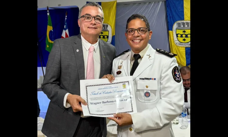 Na noite desta sexta-feira, 12, o Major PM Wagner Rocha, comandante da 46ª Companhia Independente de Polícia Militar (CIPM), recebeu da Câmara de Vereadores de Rio de Contas o Título de Cidadão Honorário do município, localizado na Chapada Diamantina. A solenidade foi realizada no Clube Riocontense e contou com a presença de diversas autoridades civis e militares.