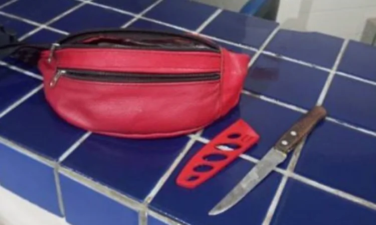Durante as diligências, o homem foi localizado e, após a busca pessoal, os militares encontraram uma faca escondida dentro da pochete que ele portava.