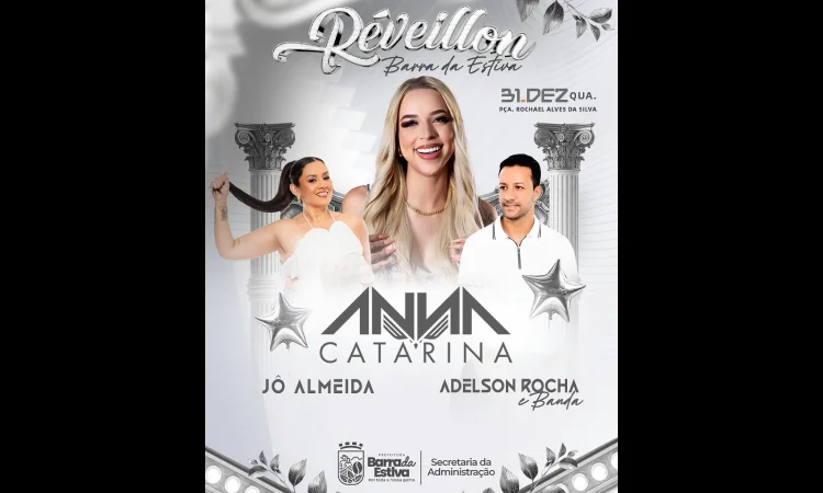 A Prefeitura de Barra da Estiva realiza, no dia 31 de dezembro, uma grande festa de Réveillon na Praça Rochael Alves da Silva, marcando a chegada de 2026 com muita música, alegria e confraternização. O evento promete reunir moradores e visitantes em uma noite especial na Chapada Diamantina.