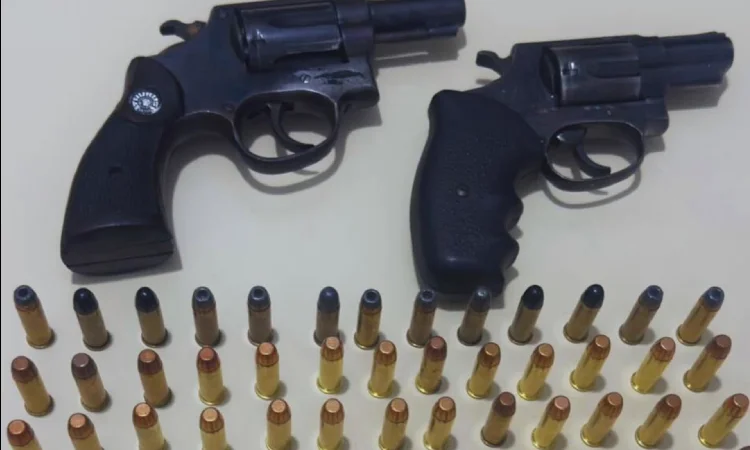 Segundo informações da Polícia Militar, o material apreendido inclui armas com indícios de irregularidades na numeração, além de munições e armas brancas.