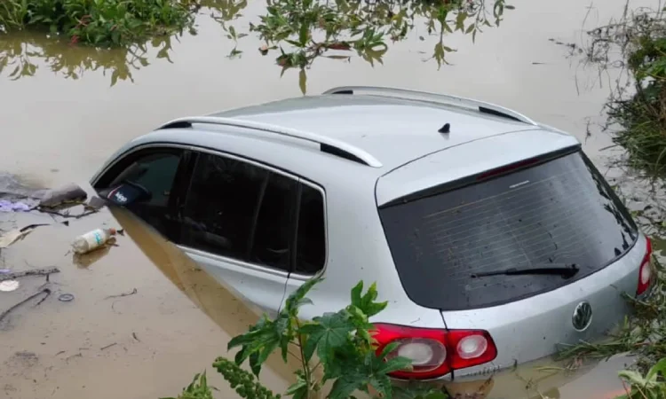 Um veículo caiu na lagoa conhecida como Zé Mineiro na manhã deste sábado (3), em Guanambi, no Sudoeste da Bahia. O acidente ocorreu por volta das 9h45, na saída da cidade em direção ao município de Palmas de Monte Alto.