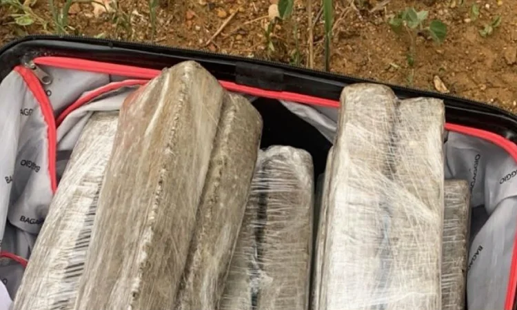 Os policiais se deslocaram até uma construção, onde localizaram uma mala de cor rosa contendo os tabletes de maconha, além de uma balança de precisão e aparelhos celulares. O segundo suspeito também foi localizado no local.