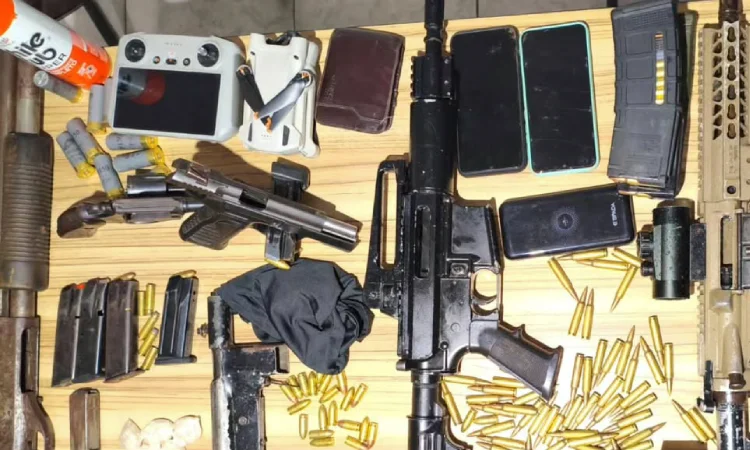 Na ocorrência, foram apreendidos dois fuzis — um deles com magnificador (luneta) para tiros de longa distância —, uma espingarda calibre 12, uma submetralhadora, uma pistola, um revólver, além de drogas, grande quantidade de munições e um drone. Todo o material foi encaminhado à Polícia Judiciária para as providências legais.