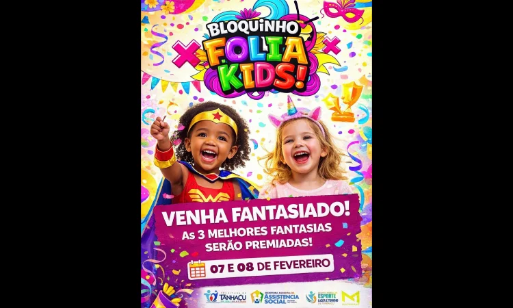 Nos dias 7 e 8 de fevereiro, Tanhaçu, no Sudoeste da Bahia, será palco do Bloquinho Kids, evento voltado ao público infantil que promete dois dias de muita alegria, cores e animação.