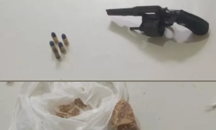 Durante a ação, foram apreendidos um revólver calibre .32 com numeração suprimida, munições calibres .32 e 9mm, porções de crack e cocaína, quatro petecas da mesma substância e duas balanças de precisão.