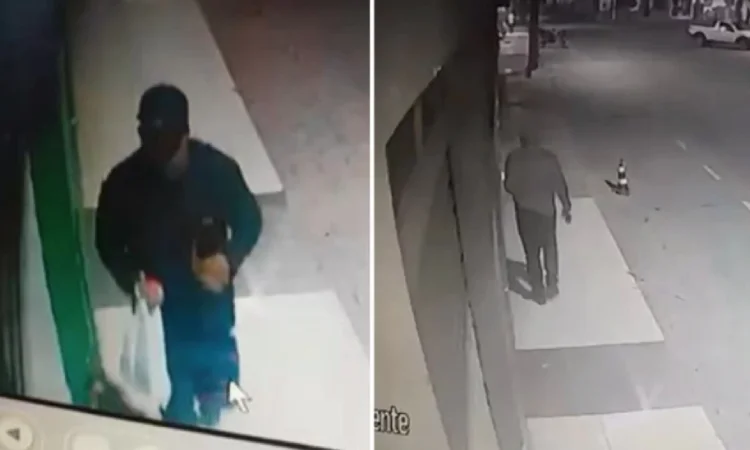 Imagens de câmeras de imóveis vizinhos registraram o momento em que o suspeito tenta arrombar a porta, se afasta e, em seguida, volta para concluir a invasão. No interior do estabelecimento, ele levou apenas o dinheiro que estava no caixa, totalizando aproximadamente R$ 15 mil.