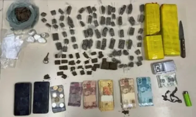 Diante da atitude suspeita, os policiais realizaram acompanhamento e, ao entrarem no imóvel, encontraram outros dois indivíduos manipulando e fracionando substâncias entorpecentes. Durante a ação, foram apreendidas porções de maconha, cocaína e crack, além de uma balança de precisão, materiais utilizados para embalar drogas, aparelhos celulares e a quantia de R$ 1.382,25 em dinheiro.