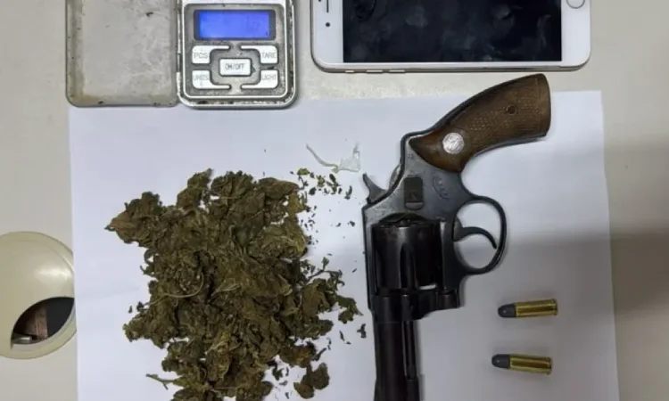 Durante a diligência, os policiais apreenderam um revólver calibre .32, munições, porções de maconha e cocaína, além de um aparelho celular.