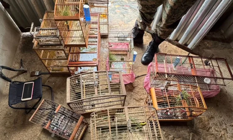 Ainda na localidade, moradores realizaram a entrega voluntária de aves silvestres mantidas de forma irregular. Foram recolhidos exemplares das espécies coleira, canário, papa-capim e azulão, além da destruição de 20 gaiolas. Após orientações, os animais foram devolvidos ao habitat natural, seguindo os procedimentos técnicos adequados.