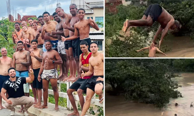 Imagens divulgadas nas redes sociais chamaram a atenção ao mostrar um grupo de homens saltando de uma ponte no município de Contendas do Sincorá, na região da Chapada Diamantina.