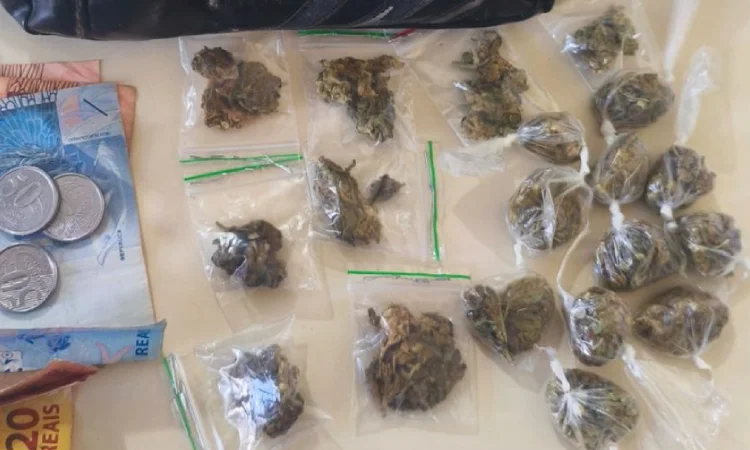 Diante da suspeita, os militares realizaram a averiguação no local e localizaram o indivíduo no quintal do imóvel. Durante a busca, foi encontrada uma bolsa contendo substância análoga à maconha acondicionada em saquinhos plásticos, além de quatro mudas da planta sendo cultivadas em baldes e a quantia de R$ 43,60 em espécie.