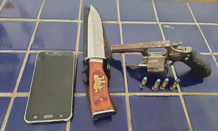 Na manhã deste sábado, novas informações levaram policiais até a BA-623, onde dois homens em atitude suspeita foram localizados durante uma ação com apoio de guarnições de Aracatu, Maetinga e Caraíbas. Durante a abordagem, foram apreendidos um revólver calibre .32 com quatro munições intactas, uma faca e um aparelho celular.