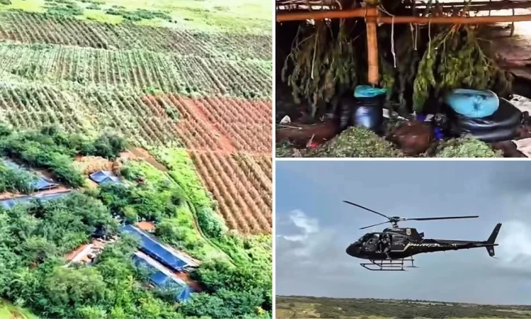 De acordo com informações policiais, as guarnições receberam denúncias sobre a presença de homens armados em uma propriedade rural, onde estaria sendo cultivada uma extensa plantação de Cannabis sativa, conhecida popularmente como maconha.