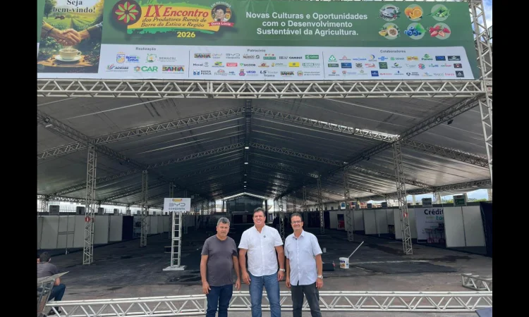 Na manhã desta terça-feira (14), o prefeito de Barra da Estiva, Wilson do Café, acompanhado do deputado estadual Marquinho Viana, realizou uma visita à estrutura montada para o IX Encontro dos Produtores Rurais de Barra da Estiva e Região, que será realizado entre os dias 16 e 18 de abril no município.