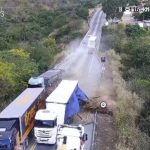 Caminhão cai de ponte e interdita BR-116 em Cândido Sales; motorista fica ferido