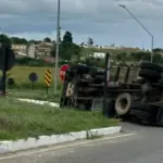 Caminhão carregado com papelão tomba na BR-116, em Entroncamento de Jaguaquara