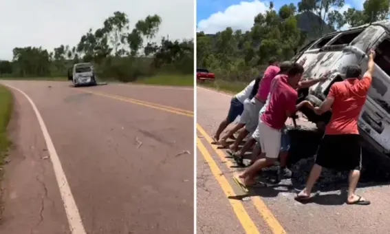 Um veículo do tipo Volkswagen Kombi pegou fogo e ficou atravessado na pista da BA-142, no povoado Pé do Morro, em Barra da Estiva, trecho que liga o município...