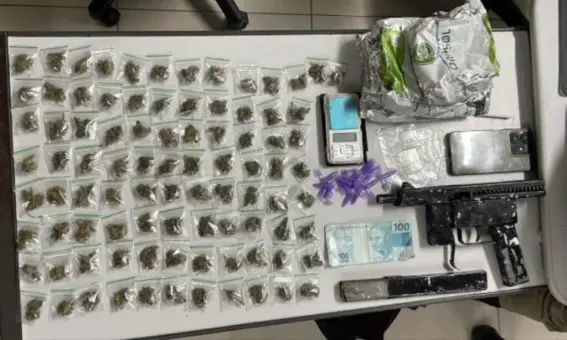 Na tarde desta sexta-feira (23), por volta das 17h35, policiais militares que atuavam na Operação Dominus Areae realizaram a apreensão de drogas e uma arma de fogo no município...