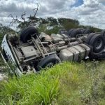 Carreta-tanque tomba na BR-242 e interdita rodovia em Ibitiara